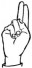 На ћирилици написано ВЛАДИМИР УЛЕМЕК састоји се из 14 слова [?]. Исписано ћириличном једноручном азбуком за глувонеме: